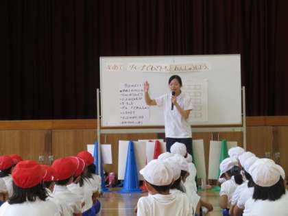9月の中頃から宮原小学校の卒業生が、教員になるための教育実習を行っています。2年1組に入り、実習前半には教育に携わる者としての心構えや、学校業務に関する講話を聞いたり、先輩教員の授業を見学したりしました。9月末からは自分で授業をしたり、担任の代わりとして子ども達を指導したりしています。