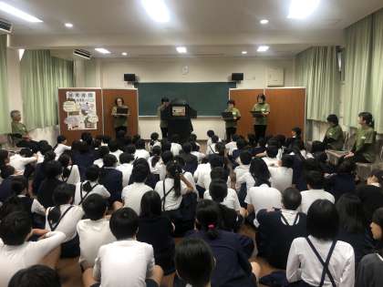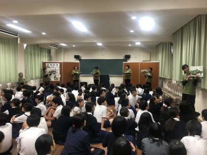 紙芝居「さらやしきの おきく」は、有名な播州皿屋敷の怪談話です。じつは6年生が今年、修学旅行で訪れる姫路城には、本丸の上山里(かみのやまさと)と呼ばれる一角に、お菊が投げ込まれたといわれる「お菊井戸」があるのです。来週に姫路城に行く6年生の気分を盛り上げるのために、「ぼちぼちいこか」のみなさんが選んでくださったお話でした。これで、修学旅行のワクワクが増えましたね。