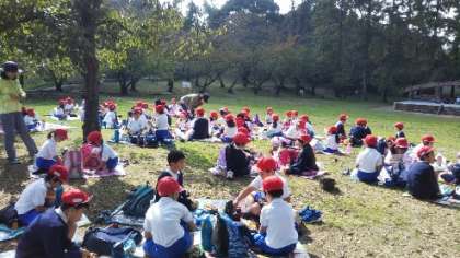 10月30日に秋の遠足へ行きました。前日の雨で子ども達は「行けるかな〜。」と心配そうでしたが、当日はとてもいいお天気で、雨の影響なく活動することができました。