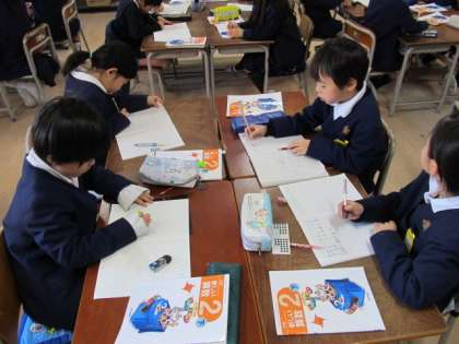 友達とグループで交流すると、同じ図でもいろいろな解き方ができることに気づきます。自分が思いもつかない解き方を聞いた子ども達は、友達の発表に感心していました。