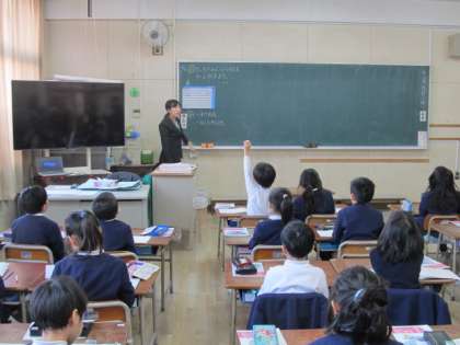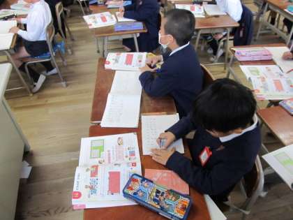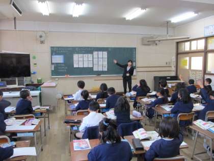 1年2組の算数では、「どちらが ひろい」の単元を使い研修授業を行いました。1年生の子ども達はこれまでの算数で、長さを比べたり(どちらが ながい)、量を比べたり(どちらが おおい)する学習をしてきました。既習の経験を活かして、今回は広さを比べる学習です。