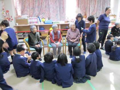 宮原小学校では毎年、4年生の児童が地域にある介護施設を訪問し、おじいさんやおばあさんと交流する機会を設けています。