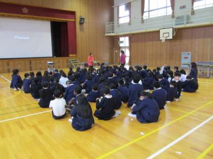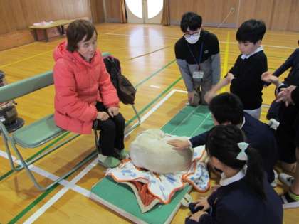 最後に講師の方が、「町で困っている人を見かけたら、大丈夫ですかと、優しい声をかけてあげてください。」とお話をされると、子ども達は優しい声で「はい」と答えていました。