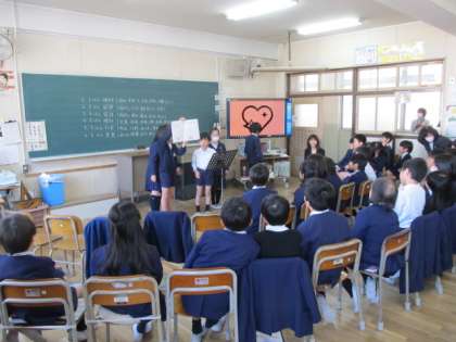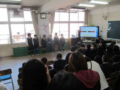 3年生はグループごとに、この一年で学習したことを披露したり、自分たちで調べたことをクイズにして発表したりしました。