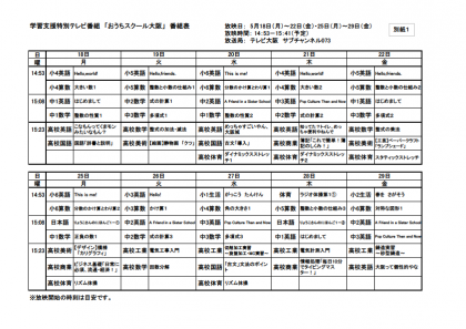 学習支援特別テレビ番組「おうちスクール大阪」番組表