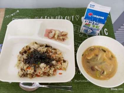 写真下は2年生の教室の様子です。 きょうの【牛肉のきんぴらちらし】も上手に混ぜて食べることができていました。 いつもみそ汁は好評で 写真の時にはおわんは空っぽでした。