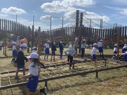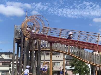 ふれあい緑地公園では、大きな滑り台に大盛り上がり♪