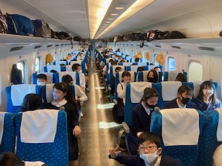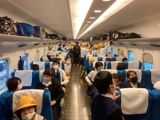 いいお天気の中、いよいよ修学旅行が始まりました。新幹線で広島に向かいます。