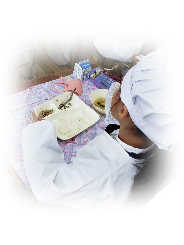 1年生の教室では、お箸を使って上手にししゃもを食べていました。「あたまからしっぽまで、全部食べた!」「骨がきれいにとれたよ!」「おなかのところにプチプチしたのが入ってた」などなど… 楽しい給食の時間を過ごしていました。