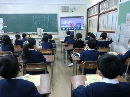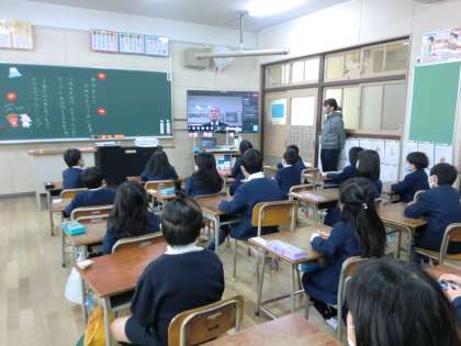 始業式はTeamsで各教室と校長室をつないで行いました。