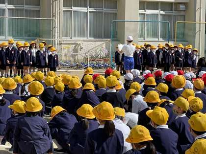 在校生の暖かい拍手に迎えられて一年がきちんと並んで入場できていました。
