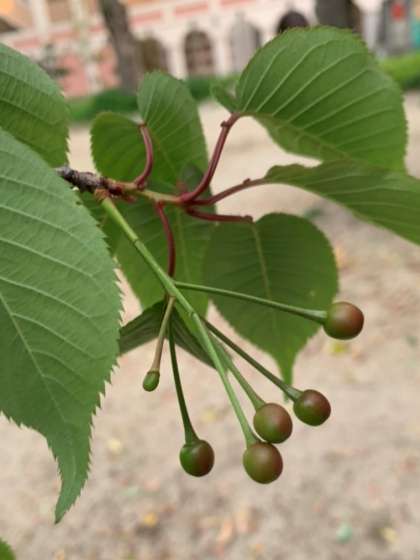 「桜は花が散って、木の実がついているね。」