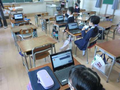 教員も朝からパソコンを準備し、子どもたちと画面越しですが顔をみることができました。