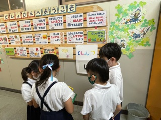 特別教室のことを教えてもらったり、各教室に貼られている一文字を探したり、楽しく活動できました♪