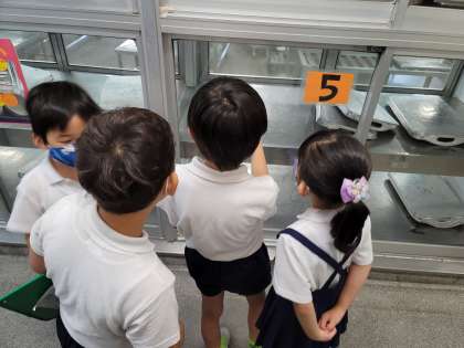 「プールは、5階にある!」「給食室のお鍋は大きい!」など新しい発見がいっぱいでした♪