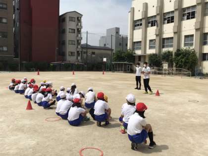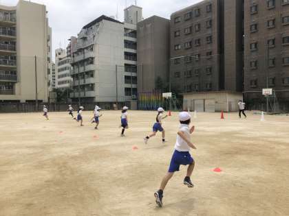 講師の先生から、速く走るポイントを4つ教えていただき練習しました。1つは腕の振り方、2つ目は足の動かし方、3つ目は目線、4つ目はスタートする時の姿勢でした。この4つのポイントを意識しながら熱心に練習していました。