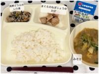 今日の献立は、鶏肉のしょうゆマヨネーズ焼き、五目汁、切干しだいこんのゆずの香あえ、ごはん、牛乳です。