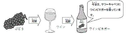 ワインビネガーは ぶどうから作られる、香りのよい酢です。ぶどうを発酵させて作るお酒(ワイン)をさらに発酵させると、ワインビネガーになります。給食ではサラダのドレッシングや魚のマリネなどにワインビネガーを使います