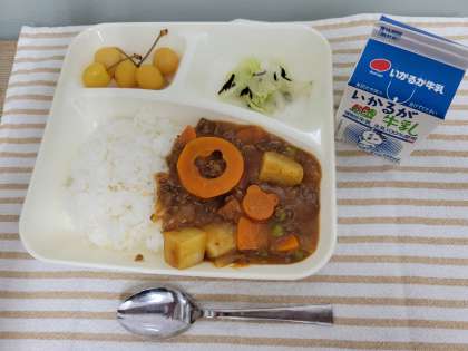 今回のハヤシライス[米粉]は、小麦アレルギーのある児童に配慮し、小麦粉で作ったブラウンルウの代わりに上新粉を使用しています。また、ルウを使用しないことで、あっさりとした味わいとなっています。