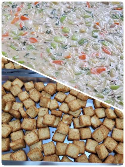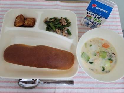 今日の献立は、はくさいのクリーム煮、あつあげのごまじょうゆかけ