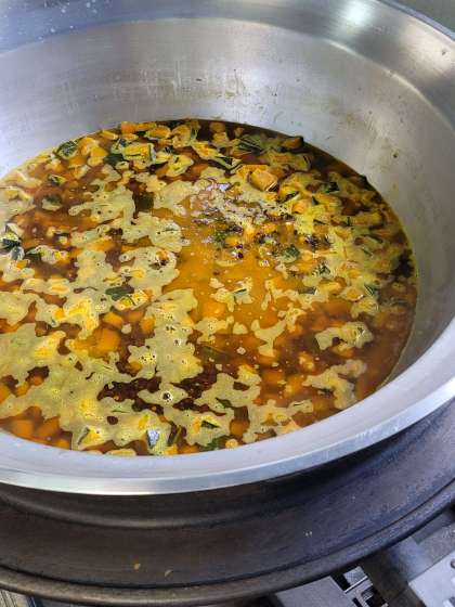 いとこ煮は、かたくて時間のかかる材料から順に入れて煮ます。