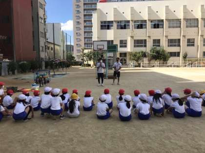 子どもたちは、熱心にコーチのお話を聞き、意欲を持って、楽しく活動していました。