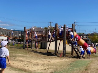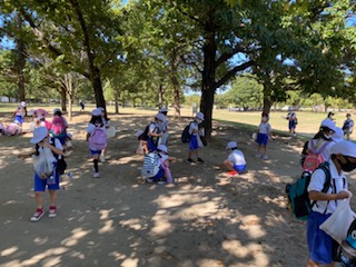 ふれあい緑地公園につき、大きな公園で楽しく遊び、どんぐり拾いをしました♪
