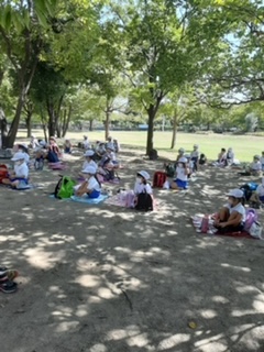 いつもと違う場所で1年生みんなで食べるお昼ごはんは、美味しいですね♪