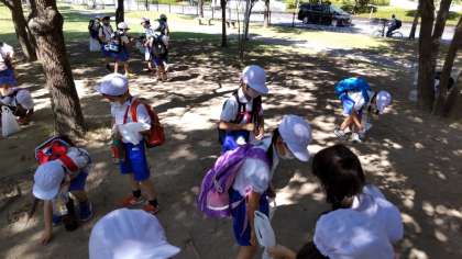 子どもたちは元気いっぱい遊具で遊び、どんぐりもたくさん拾いました。