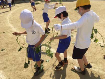いもほりが終わると、つるで遊びました。なわとびをしたり、つなひきをしたり、しっぽとりをしたり。とっても楽しそうでした♪♪