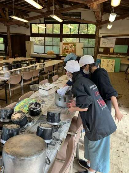 お腹がいっぱいになった後は、みんなで協力して片付けをしています!厳しいチェックにやり直しもたくさん。テキパキと動いてがんばっています!