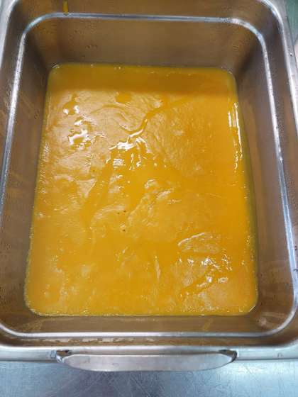 下の写真は、【かぼちゃういろう】です。教室で一人分ずつ切り分けて配膳します。