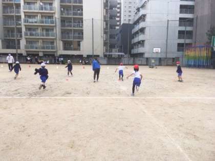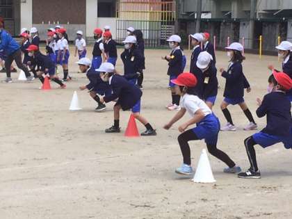 出前授業で速く走れるコツを4つ教えてもらいました。1うでを後ろにふる。2つま先で走る3前の一点を見る。4スタートの時、後ろ足を足一つ分下げる。この4つに気をつけて、これからもがんばるぞー!!