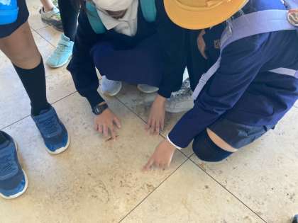 見学の後、あべのハルカス様の方から、今回だけ特別に、一般の方が入れないSDGsの取り組みの雨水の再利用施設を見学させていただきました。また、本物の化石(べレムナイトとアンモナイト)を見せていただき、先月に行った自然史博物館の学習がさらに深まりました。また、大阪環状線から見る景色も堪能して、子どもたちは大満足な一日でした。