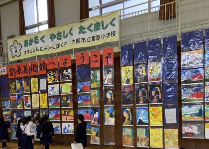 各学年の作品を講堂に飾っておりますので是非お立ち寄りください。