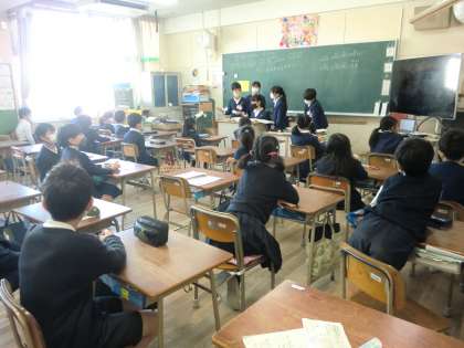 12月11日の宮原まつりに向けて6年生を中心に、店での役割や看板の作成、お店をまわる時の並び方などを決めていました。