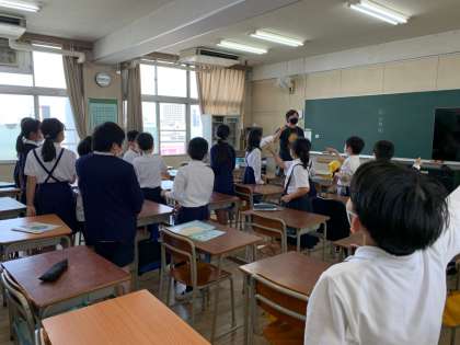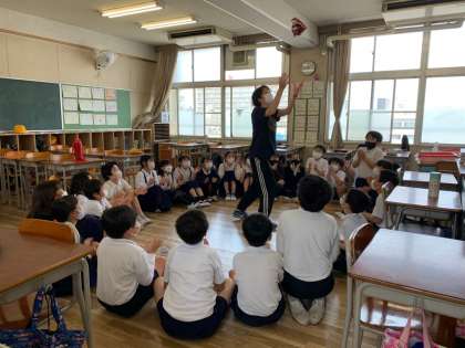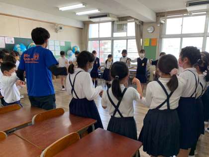 学年の先生の自己紹介の後はそれぞれの先生が、キャンプファイヤーなどでできるゲームを企画してくれました。1泊自然体験本番では、児童らが自分たちで企画、運営をしなければいけないので、それまでに考えていてくださいね。