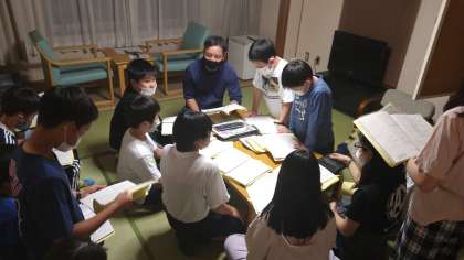 班長会議です。1日を振り返り、明日の最終日につなげていきます。