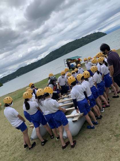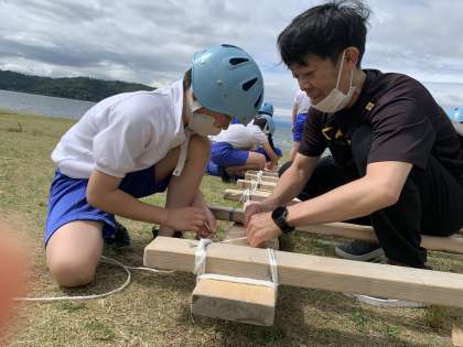 みんなで協力して、難しいロープの結び方も大きな道具も運んで頑張りました。