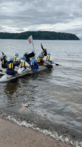 いかだレースをおこないました。みんなで力を合わせて頑張りました。