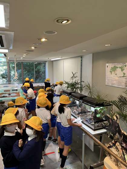 昆虫館です。クワガタやカブトムシなどいろいろな昆虫がいました。チョウが放し飼いされている場所もありました。中にはみんなから嫌われるあの虫も?!いましたが、楽しく見学しました。