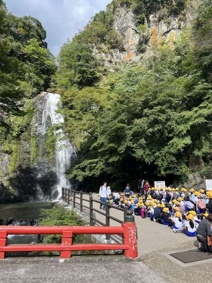 ついに箕面大滝につきました。子どもたちは自然のすごさに圧倒されています。