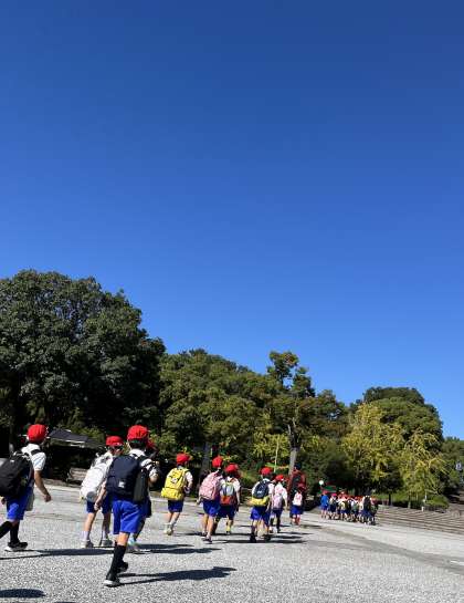 トイレを済ませたらどんぐりや落ち葉を探す「秋みつけ」に行きます。