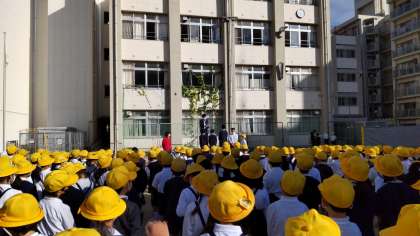 また、水曜日から修学旅行に行く6年生から、全校児童で作った折り鶴でできた千羽鶴の紹介がありました。この千羽鶴は、平和への願いを込めて、広島へと届けてもらいます。