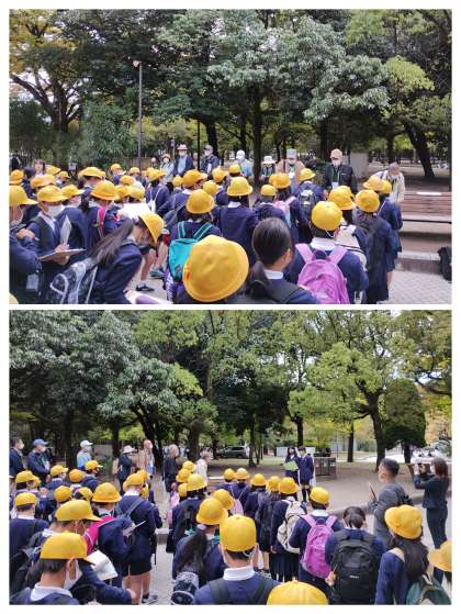 ボランティアガイドの皆さんにあいさつをし、活動班で碑めぐりに向かいます。