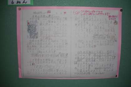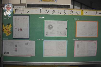 秋になり過ごしやすい季節になりました。掲示されている自学ノートを見ると、どの学年も、学習していることの復習をしたり、現在学習中のことをもっと調べてまとめたりと、じっくり学習する姿勢が見えてきます。11月12日の土曜授業にお越しの際は、11月分の自学ノートのきらりさんの玄関掲示をご覧ください。