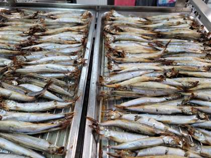 ししゃもは、北海道の太平洋岸にすむキュウリウオ科の魚です。