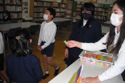 宮原小学校では、11月7日から11月11日まで秋の読書週間の取り組みをしています。図書委員会の取り組みでは、昼休みに図書室に来館し本を読んでくれたお友だちにしおりをプレゼントしています。そのしおりは、図書委員会の児童が手作りしたモンスターのしおりです。これをきっかけに、たくさんの本との出会いに繋げていってほしいです。
