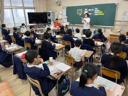 1日、4年生を対象に、フッ化物洗口とガムを使った咀嚼チェックを行いました。