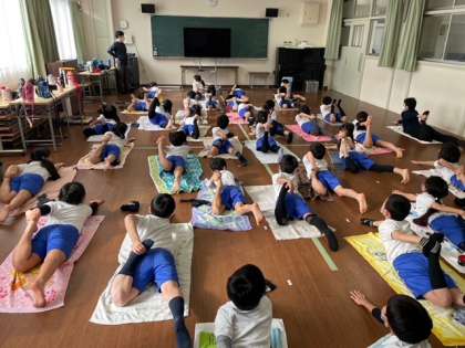 子どもたちは、ふかーく息を吸うこと、吐くことで、体が整うことを実感しました。